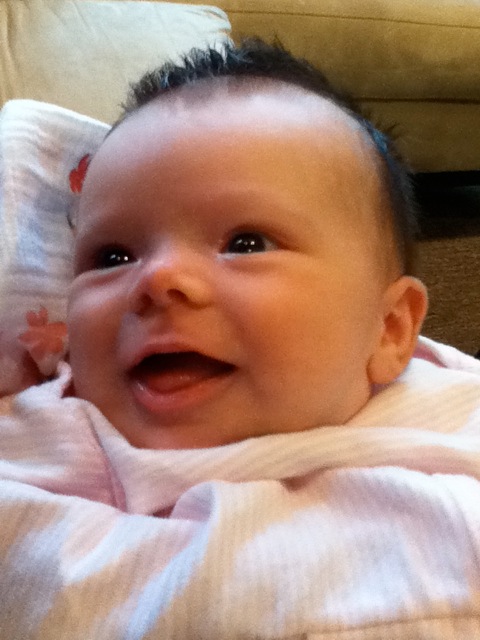 As we celebrate Maddie’s 8th week on the planet – there are several things to be grateful for, but today we will focus in on one of Maddie’s newest skills – her smile.