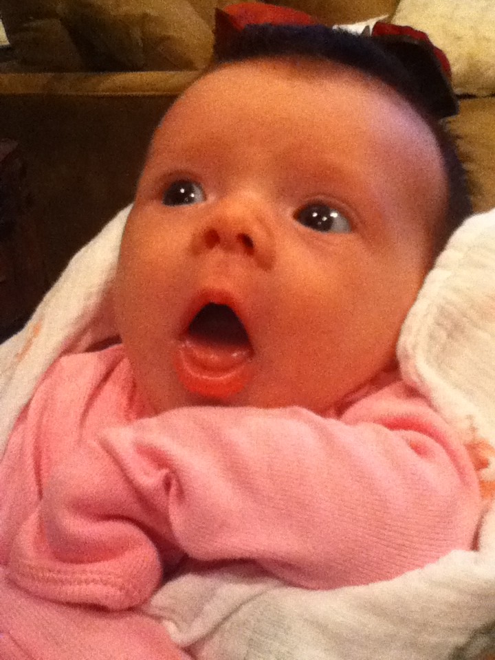 It’s been a few days now since the baby’s overall awareness has experienced what I can only term as an awakening. Her sense of hearing and sight may not or may not have changed much, but her interpretation and reaction to these sensory inputs have undergone a revolution.