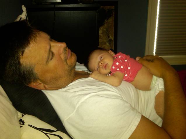 I woke up about three miles from home and both Maddie and her PaPa were in the same positions we had been in 45 minutes ago when we feeding time was supposed to begin. Like Father, like daughter: “If this car is a moving – Baby and PaPa will be snoozing!”