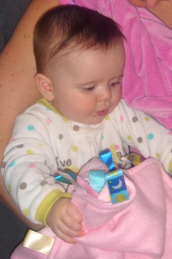 Even with all the attention Maddie is getting, there is one distinct downside that we haven’t encountered yet. For months now, Maddie has been swinging various items around and knocking herself right in the head.