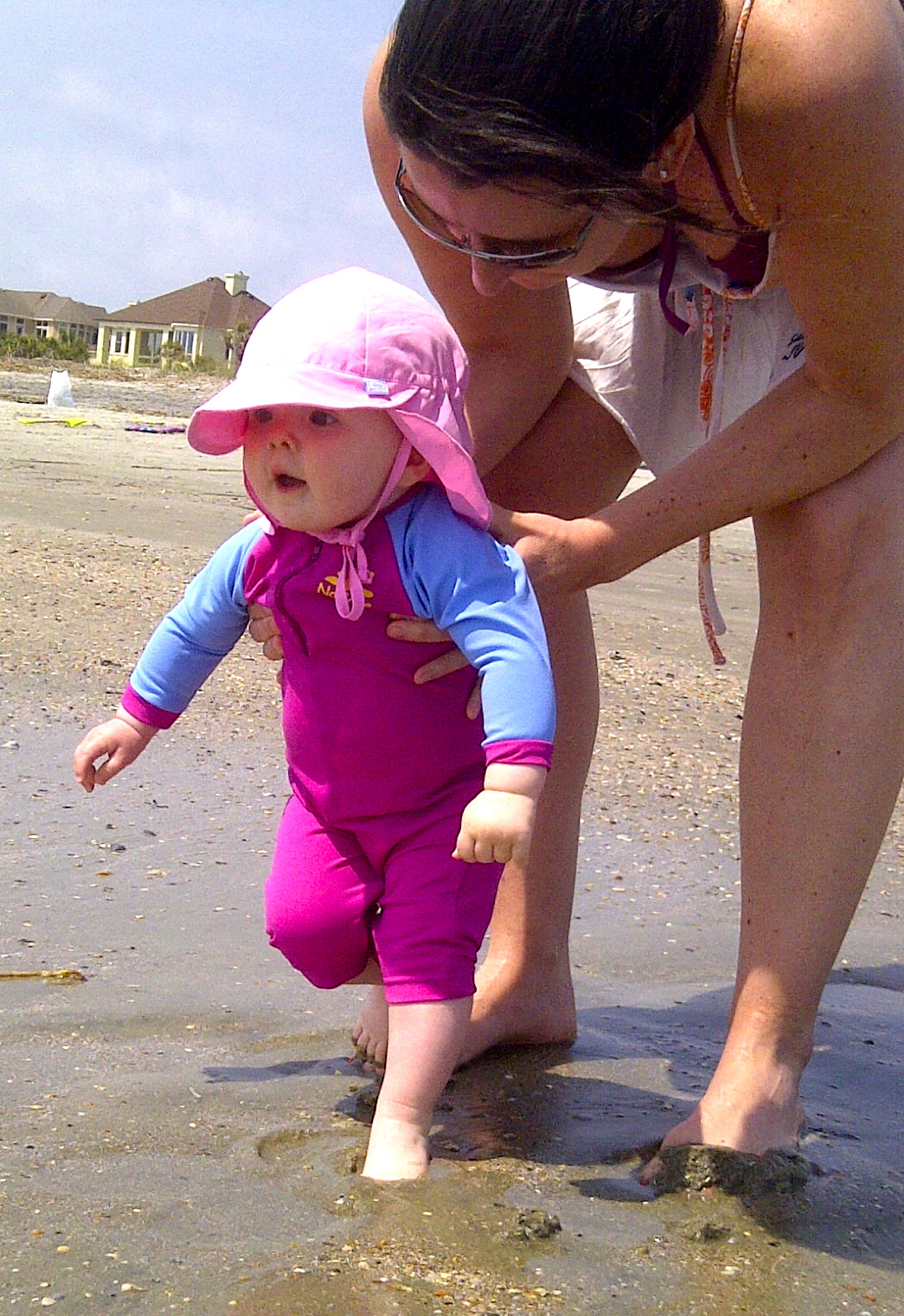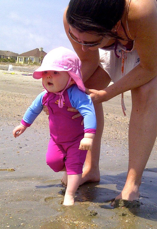 That’s right, the baby who was afraid to take a bath can’t wait to climb into the ocean. It all started with a sudden keen interest with the sand between her toes.
