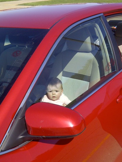 The best way to keep the baby sleeping comfortably in the car is to know where a pacifier is at all times. This is true even if you are sleeping right along with the baby. As soon as Maddie starts to stir, my eyes snap open so I can quickly locate the closest pacifier.
