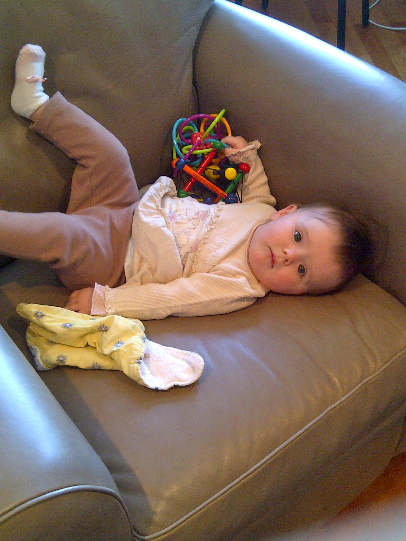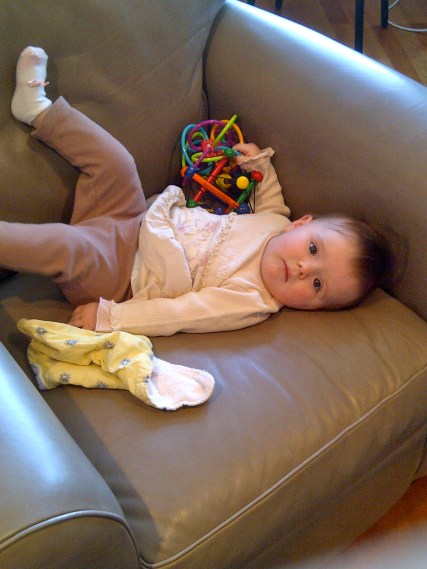 After a quick discussion, we green-lighted dinner but had to score a bib for the baby first. We popped into a nearby drugstore and Maddie unexpectedly hit the panic button. Gina rolled Maddie outside and I ducked into a nearby Dunkin Donuts for a Priority One emergency bagel. I handed Maddie a piece and the crisis was averted – just in time for dinner!