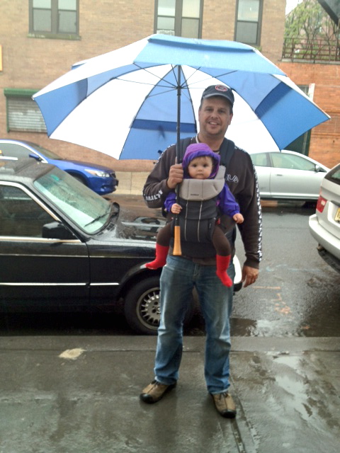 So once it was time for Maddie’s mom to leave for work, the baby and I joined her for a rainy trip into town. As soon as the door opened before us, a great smile spread across Maddie’s face. She seemingly rediscovered her great love for the outdoors and was more than happy to embrace the driving rain.