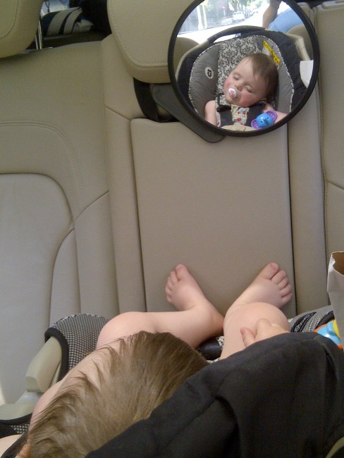 At first, this seemed like a solid strategy. This way the salad would not be forgotten when it was time to extract Maddie. What Dad did not take into account was what would happen if Maddie fell asleep. But sure enough, just 15 minutes from home, the baby was down for the count. We know all too well that if you wake the baby from her nap, she won’t give you a second chance to put her down for several hours.
