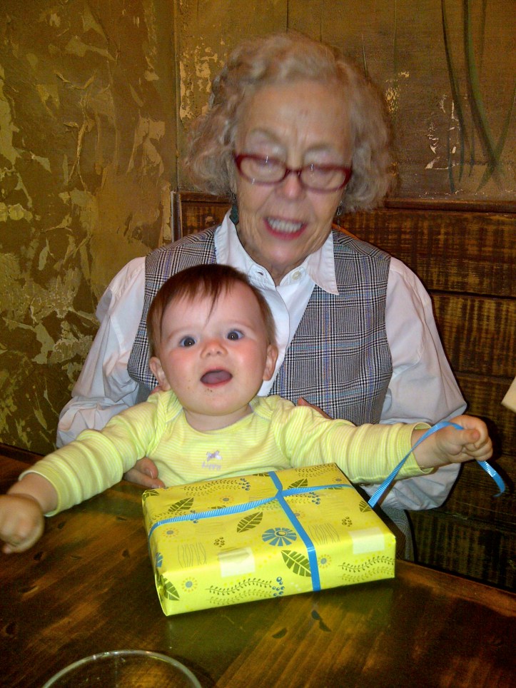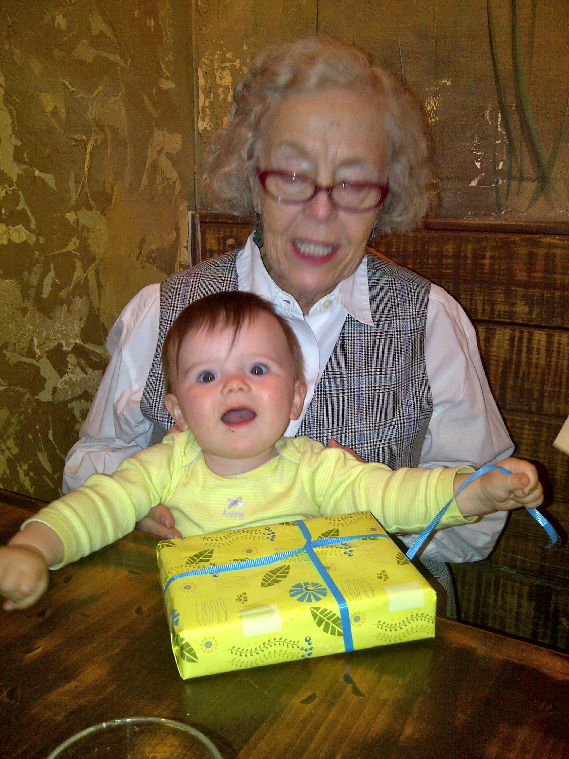 We made a few more stops and stopped to watch some pedestrians get pummeled by a wall of water launched by a speeding bus. That gag just never gets old, but it was time for the sweet girl to catch a nap. Maddie slept so long that we were late leaving for our birthday lunch with Maddie’s grandparents and great aunt.I have it all under control!