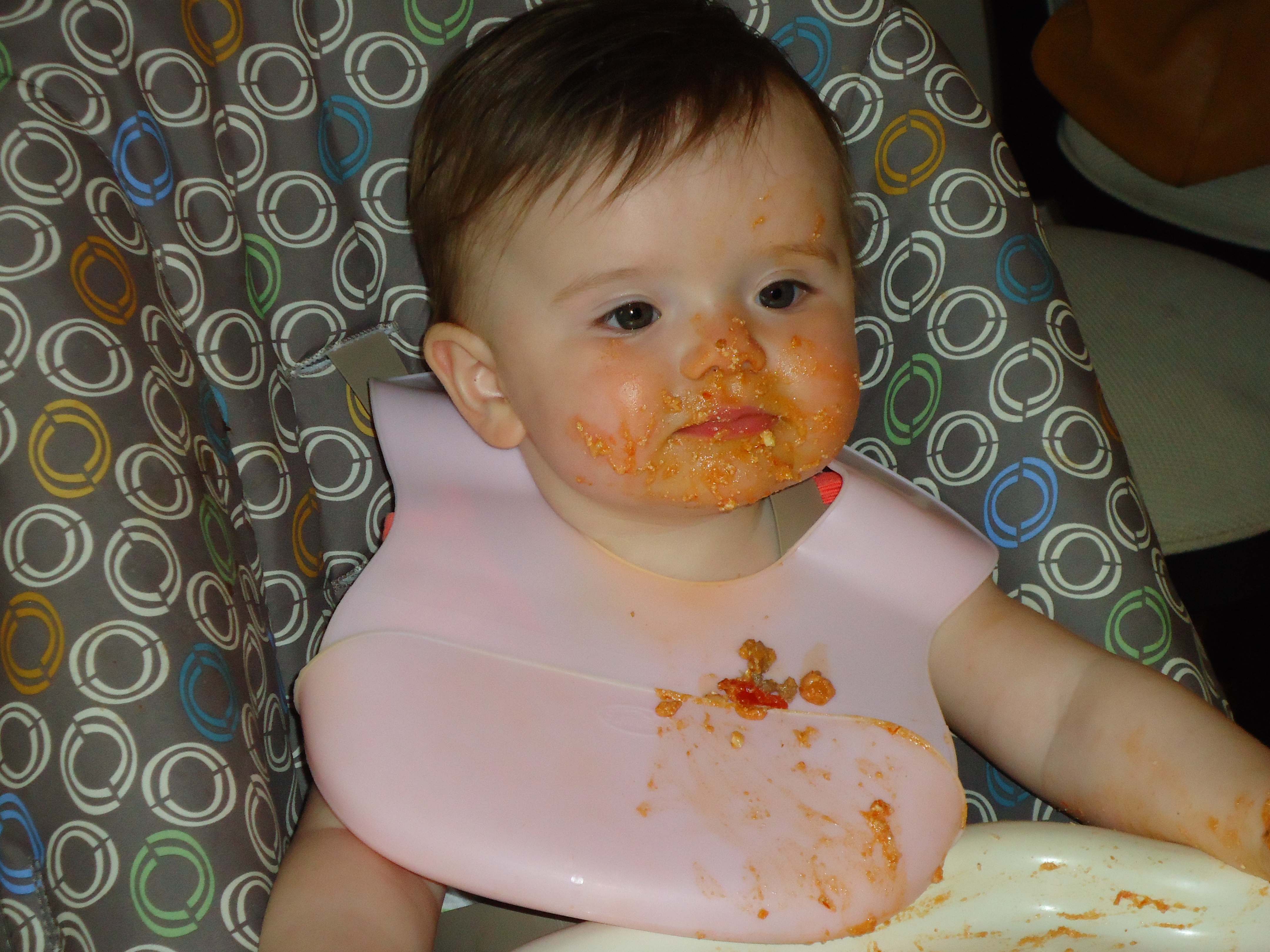 Maddie enjoyed the taste, but was locked into a moral dilemma. Should she enjoy her meal, spread it all over her face or redecorate the kitchen with it? The answer hit her like a ton of bricks, why not do all three?