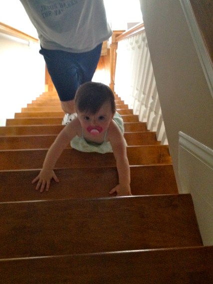 So how long would we have to wait before Maddie perfected the art of raiding the stairs? How about just a little less than four hours? That’s right, shortly after Maddie woke up from her afternoon nap, she was off to the races climbing the stairs with reckless abandon.