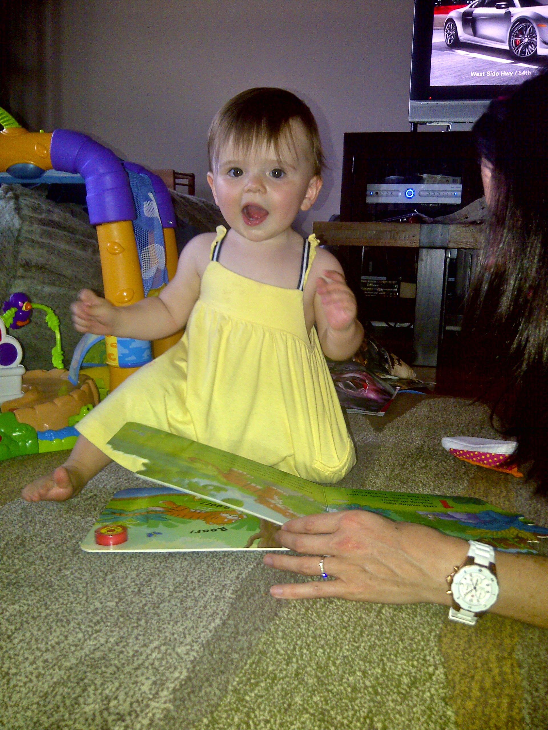Normally I can get to her before she sticks it into her mouth, but sometimes we have to remove the paper straight off of her tongue. We’re pretty sure that this is not a hunger issue, most of the paper-chasing takes place after her meals.