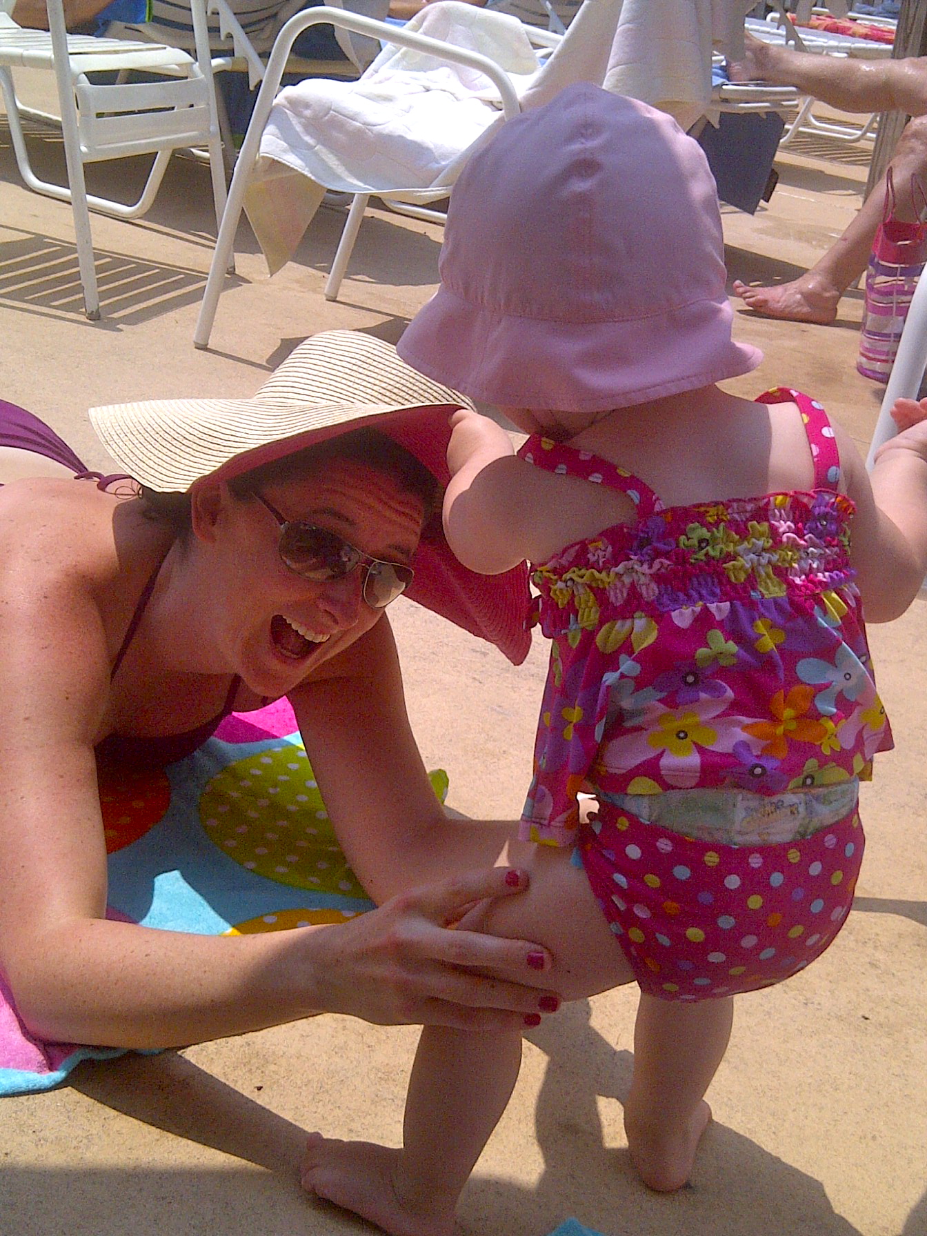 Maddie took turns letting each parent shuttle her around the pool. She had her legs up, some nice warm water and a pacifier to play with. She snatched the sunglasses off of my face a few times, but all and all, we were seeing a new Maddie. This was a kinder and gentler Maddie who was willing to hang out with the parents and pass the day away.