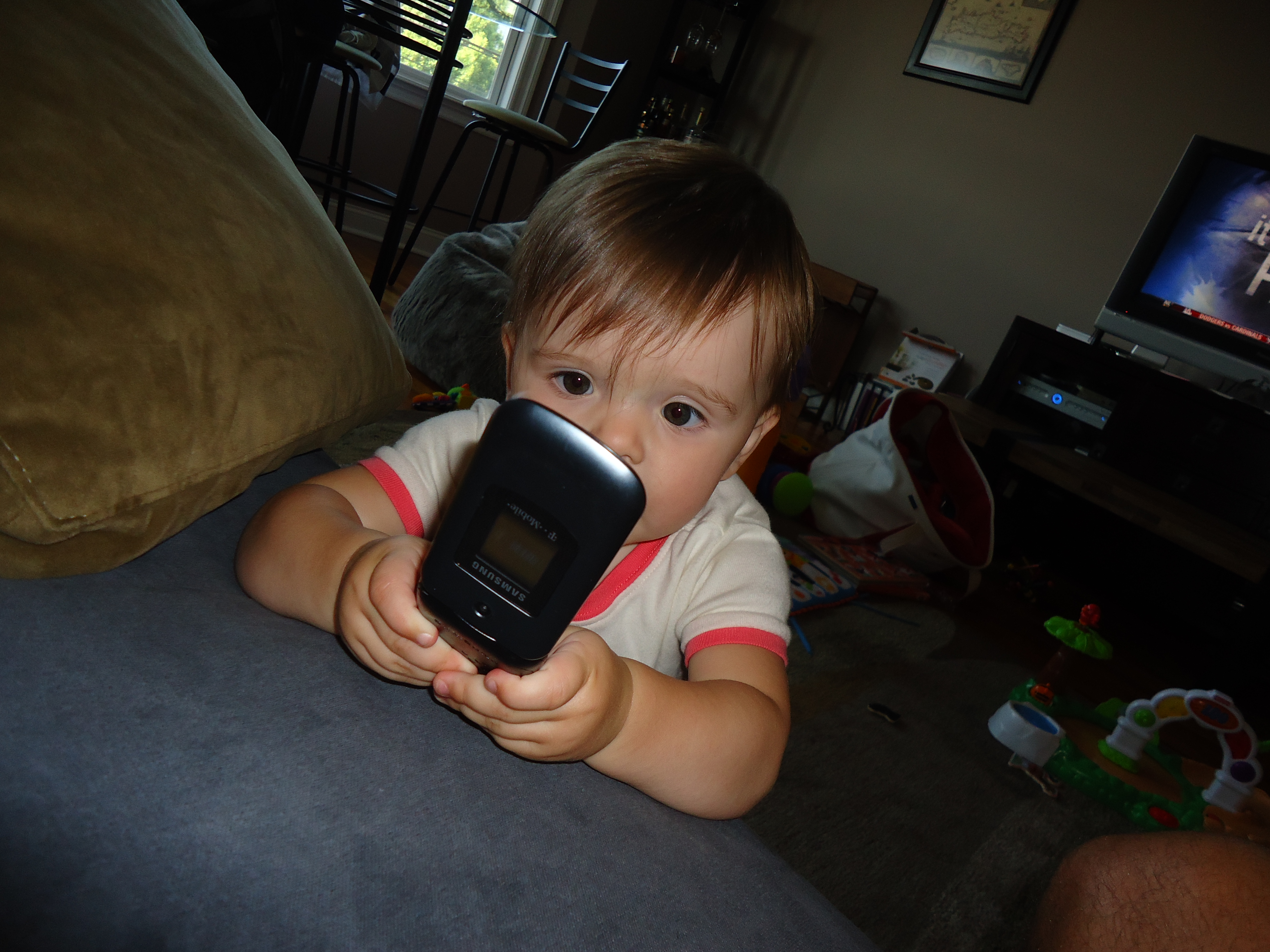 This was quite a polished and practiced motion for a girl who seemed more likely to bite the thing in half just last night. But that’s how Maddie rolls, she likes to figure things out on her own and does not want any help. This is all fine and dandy except when it comes more dangerous pursuits like climbing the stairs.