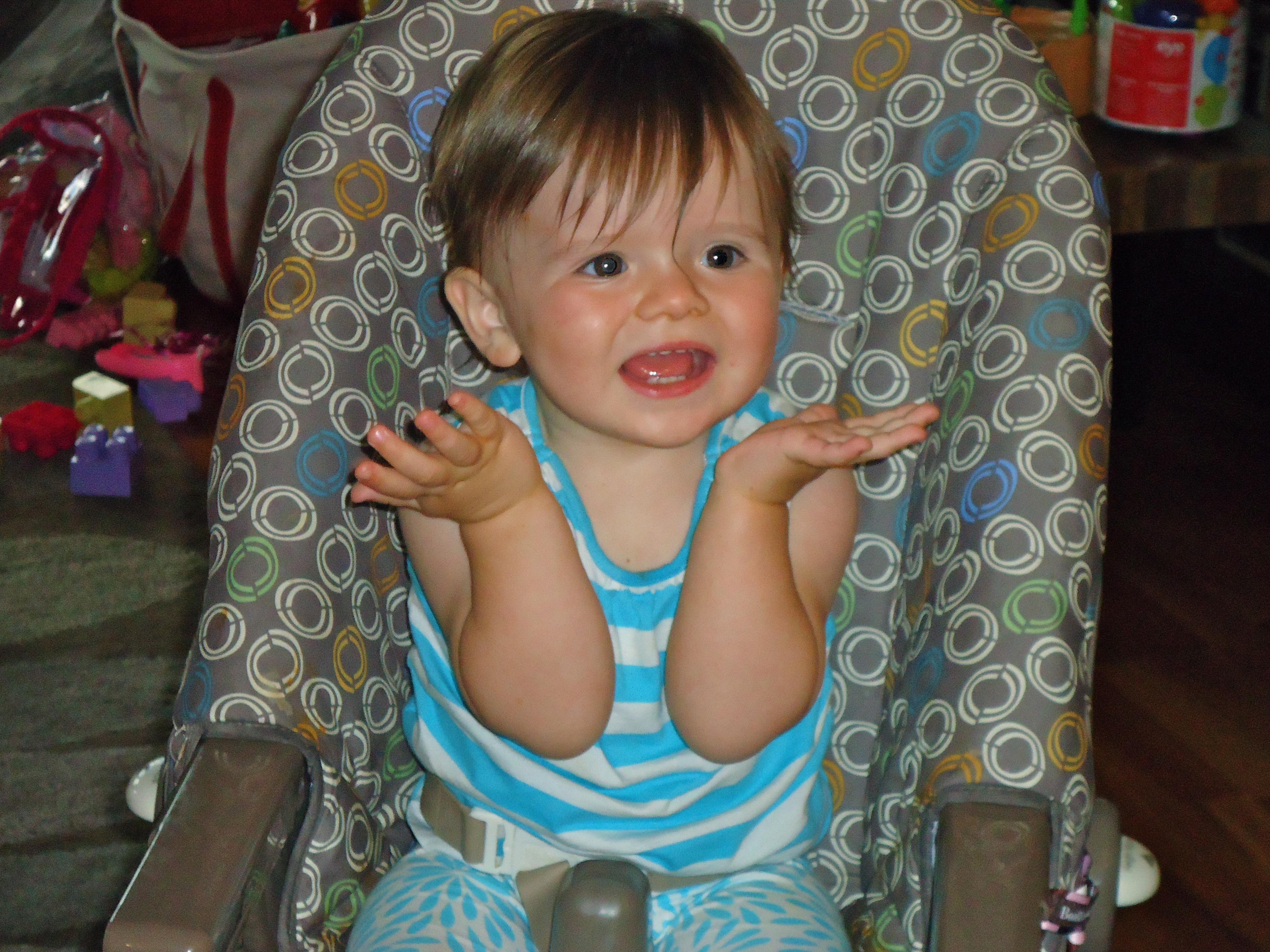 But even with that little added flavor, Maddie is ratcheting up her communication skills – even if she is not bothering to use any words yet. Our little girl is becoming quite proficient at showing us what she wants and when she wants it.