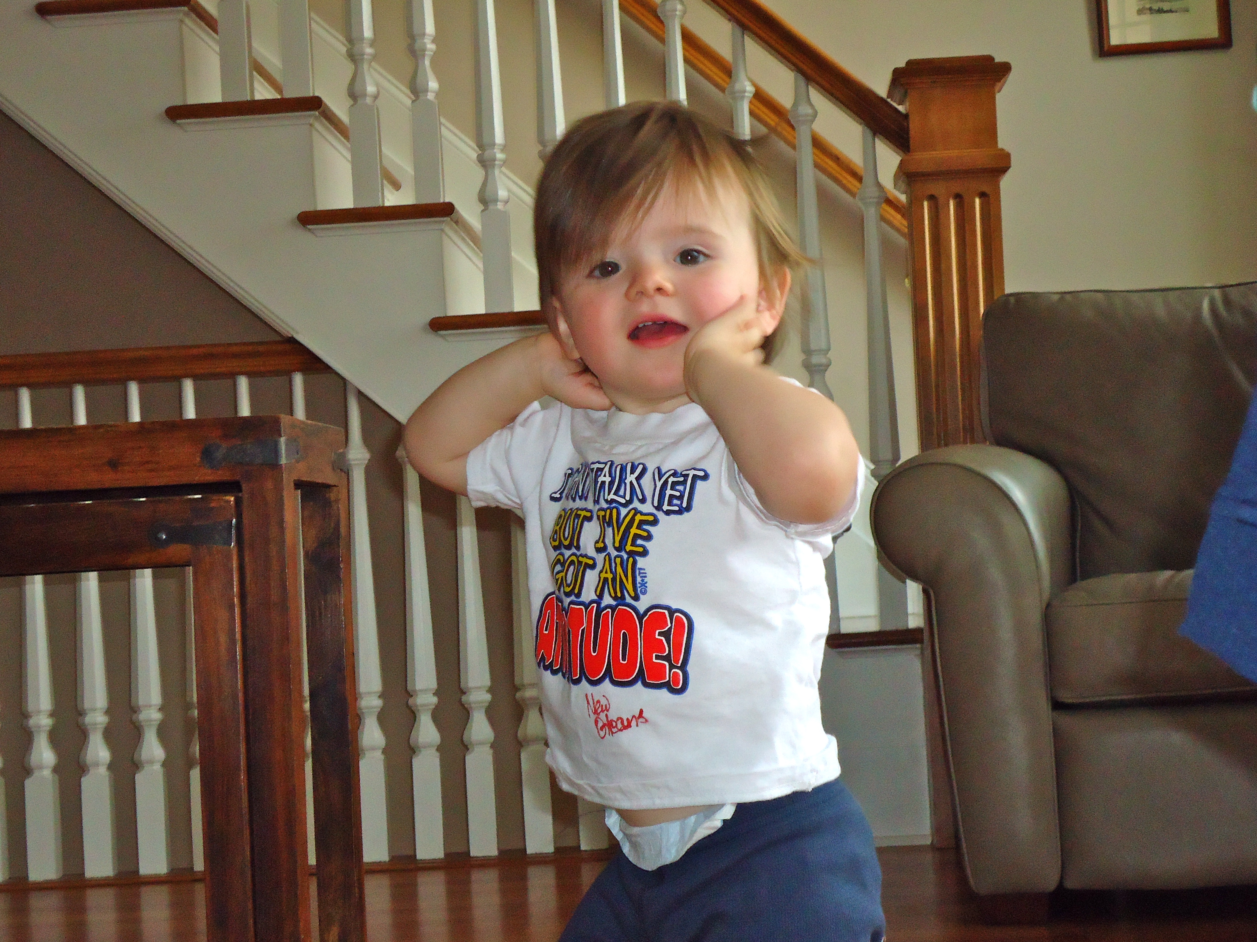 It’s hard to keep up with Maddie and her ever-expanding bag of tricks. She is 14-months-old now and has a startling grasp of the English language. Her spoken words are limited to Heyy, bye, Daaa and Maaa – but her comprehension of words and phrases is unmistakable.