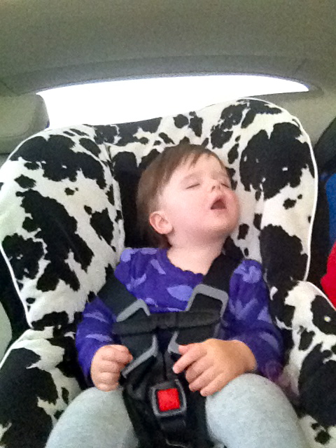 “Way to Go!” thought Maddie. So now it was time for us to head west and find a new way to Maddie’s grandparents house. After a couple of hours, we pulled off to feed Maddie breakfast. As soon as we exited, Maddie fell completely asleep – UH-OH!