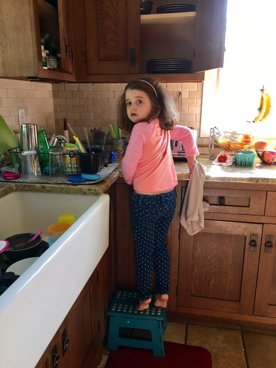 I kept looking for higher perches as she followed me around the kitchen with her trusty stool.